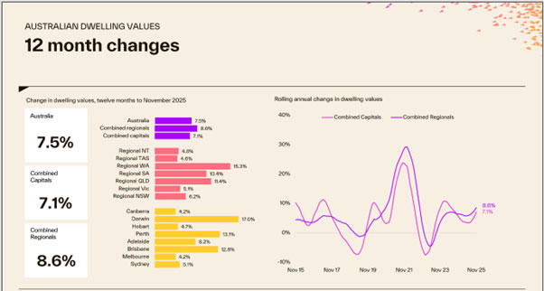 With Reginal Areas appreciating at 3.1% p.a. and Major Combined Capital cities by a healthy 7.1% for the same 12-month time frame.