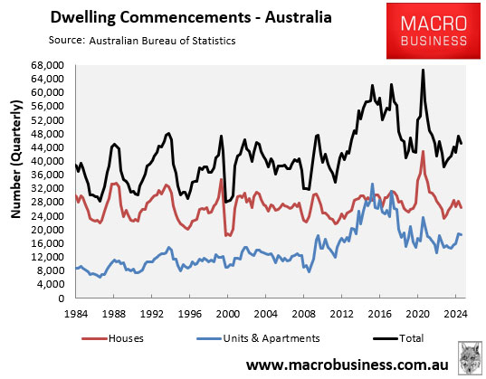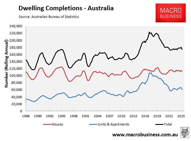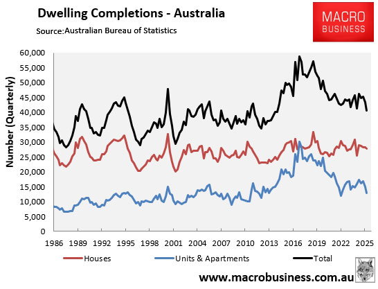 It was the weakest quarter of dwelling completions for 11 years (i.e., since the March quarter of 2024).