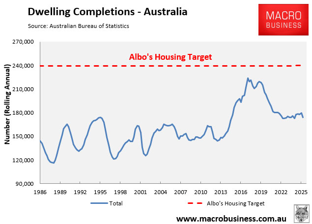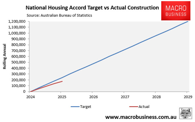 Over the first year of the Housing Accord, which commenced on 1 July 2024, only 174,030 dwellings were completed, which was 65,970 (27%) below the 240,000 annual target.