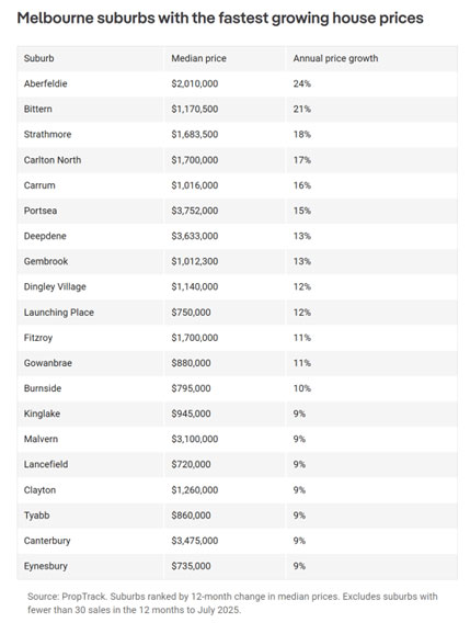In fact, many of Melbourne’s top eastern and bayside suburbs stubbornly defied the odds, and performed quite well, with many hitting double digit growth in 2025, according the latest Report from Domain 2025;